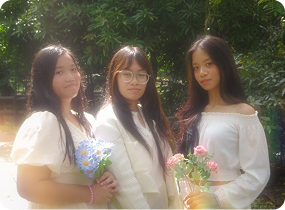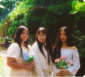 The swans represent femininity as the group’s name came from the word “eabab” or “babae”. Meanwhile, the bow represents the unity and balance of the group — a bow having two sides and the group having two friend groups, it shows symbolization of how the bow connects the two different friendships. Lastly, the oval represents the wholeness and the connection of the whole group.